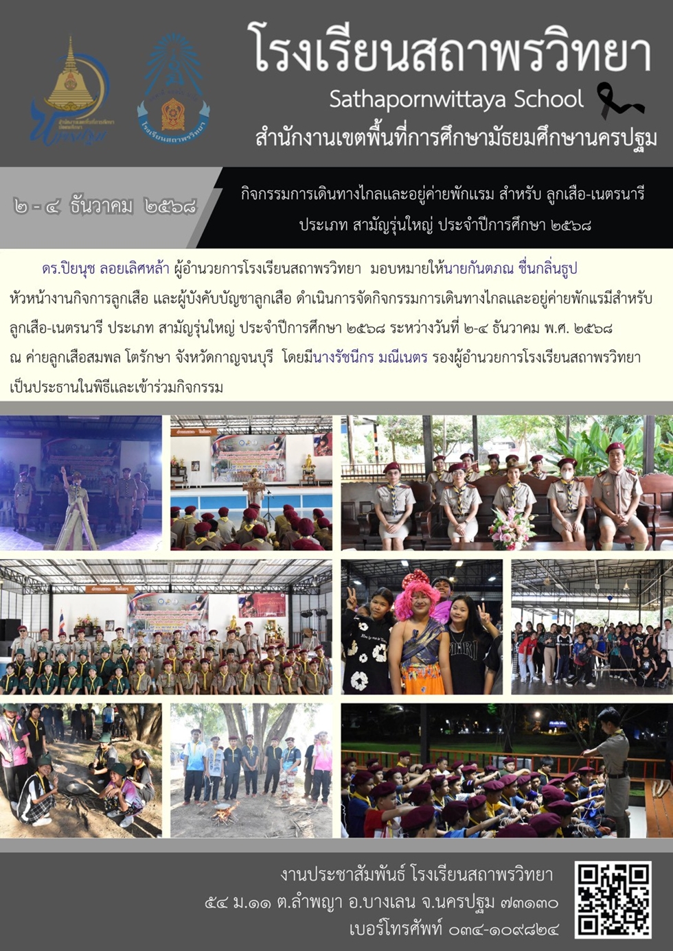 กิจกรรมการเดินทางไกลและอยู่ค่ายพักแรม สำหรับลูกเสือ เนตรนารี ประเภทสามัญรุ่นใหญ่ ประจำปีการศึกษา ๒๕๖๘