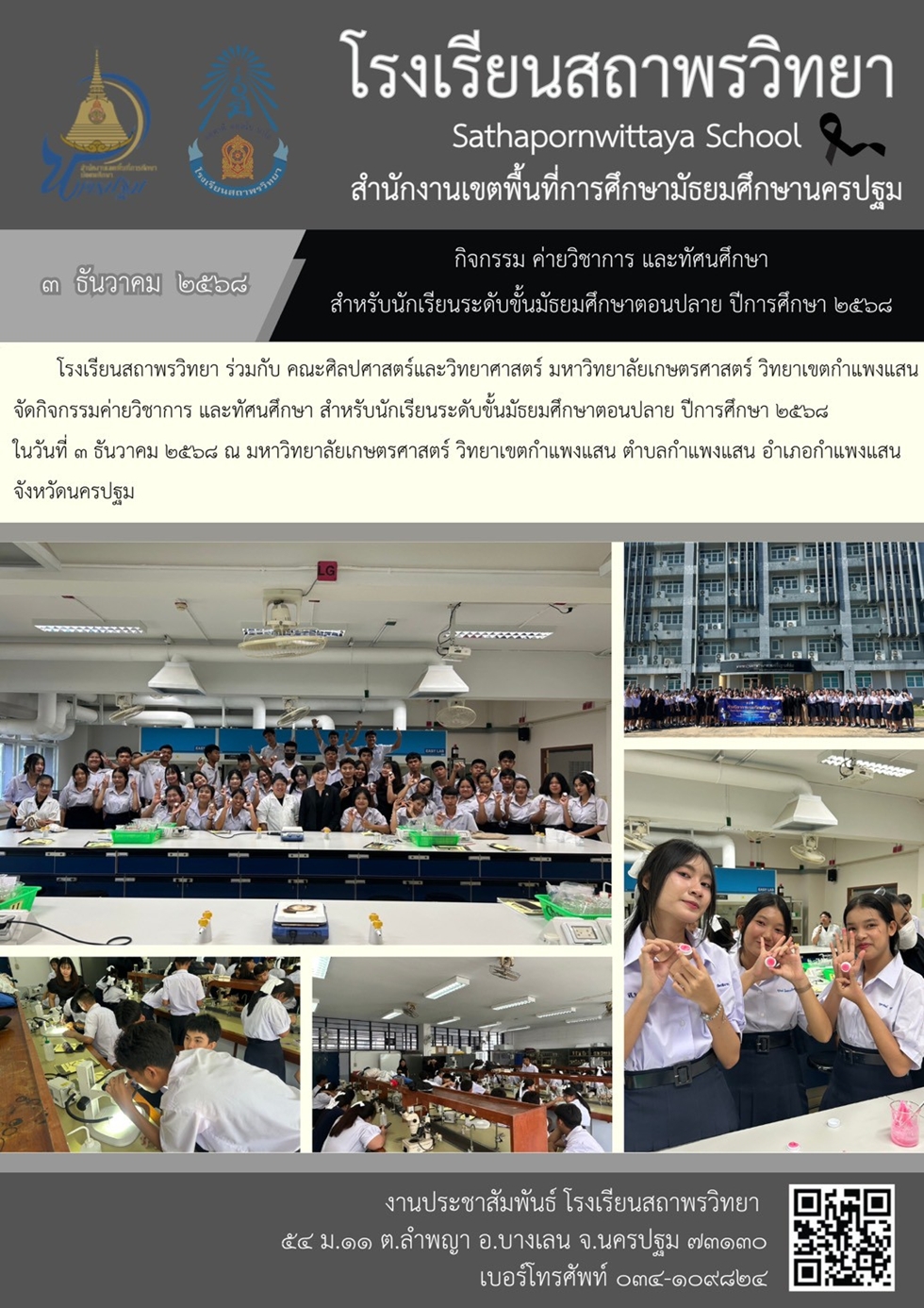กิจกรรม ค่ายวิชาการ และทัศนศึกษา สำหรับนักเรียนระดับชั้นมัธยมศึกษาตอนปลาย ปีการศึกษา ๒๕๖๘